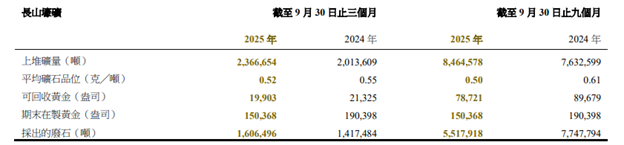 2025年三季度长山壕矿财务表现概览